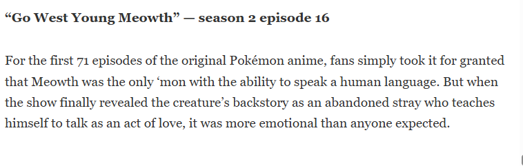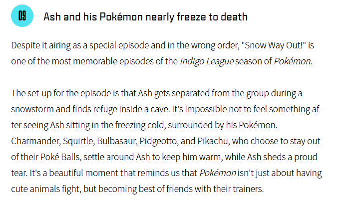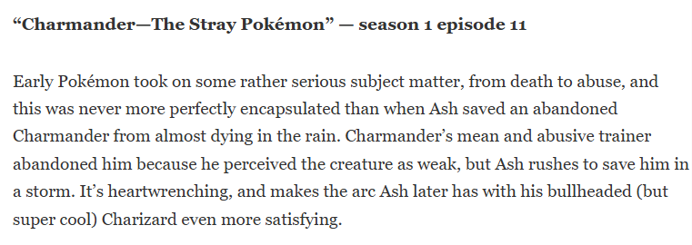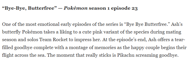 After reading Polygon's list, I found others that highlighted the maturity hiding right under the Pokémon Japanimation's surface. SyFy, for example, made a beautiful list of the show's 10 Saddest Moments. I thought I was the only person who remembered this: