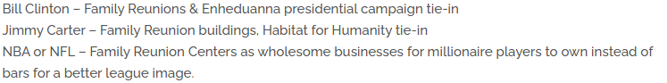 The family reunion buildings come up a lot: