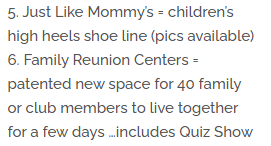 He wanted to make high heel shoes for children and here are the family reunion buildings again: