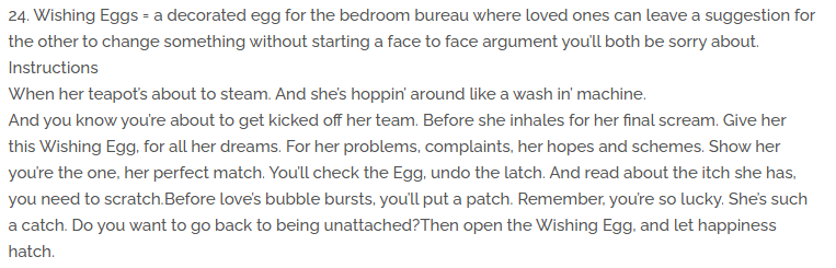 Here's Wishing Eggs, incidentally the only part of this poem that works as a poem:
