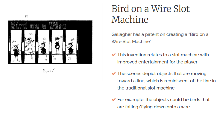 Gallagher's website preserves other ideas. Gallagher wanted to make a slot machine with little cartoon birds: