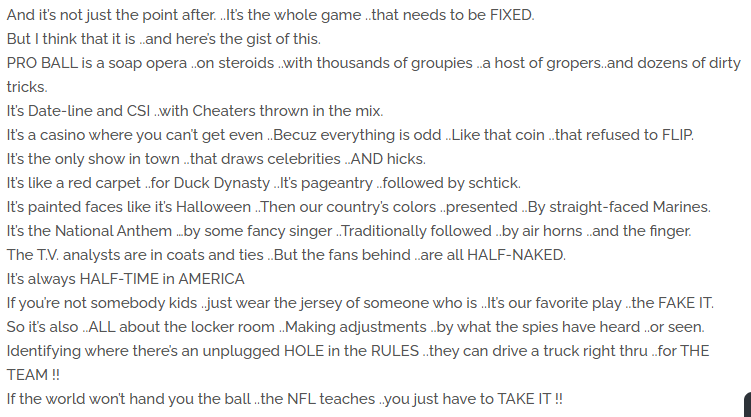 There's a 1,563 word rant about football (what follows is but an excerpt):