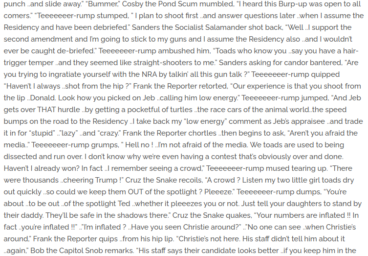 and an incoherent political rant that runs over 1,600 words: