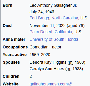 Gallagher fascinated me. His life was so interesting and he spoke about it so rarely that the little details I got became little worlds. Por ejemplo, here's his little box on Wikipedia: