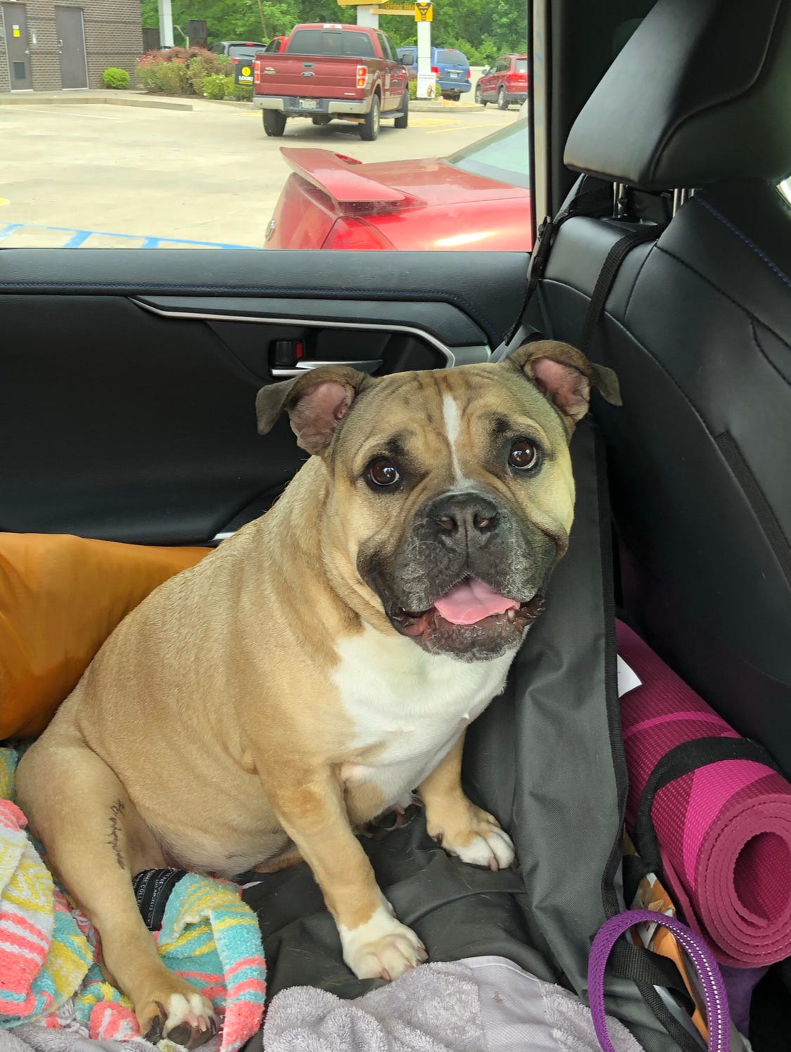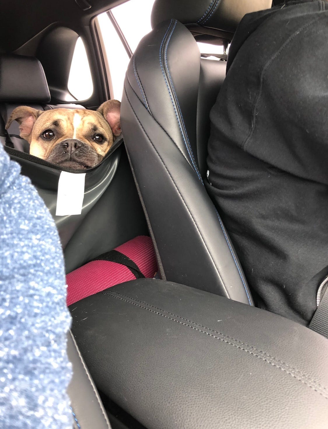 And she continues to reveal the ways her past trauma informs her present: after being isolated for so long, she has attachment issues. On a recent road trip across the country, those manifested in her trying to climb from the backseat into the driver’s lap, and she barked piercingly when we blocked her from doing that. She’s 55 pounds and was unwittingly attempting to send us into a ditch. We can’t indulge her desire to lick our faces on an eight-hour drive through states we’ve never traveled through. At the end of the first day, with thirty more to go, half deaf and entirely fried, I responded to my mother’s friendly “How’s it going?” text with “I will never do this again.”