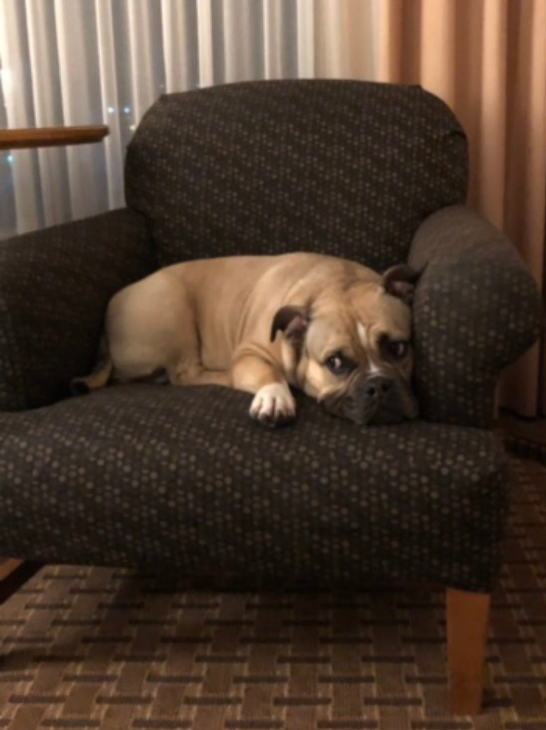 As we were talking, we did what all dog owners do and started trading stories. I confided the most frustrating thing Pumpkin’s ever done by a mile, when I came home from work to find she had torn up and eaten half of a couch. She was thrilled with herself and to see her owners, though, and rolled over on her back for some rubs. My partner has this all on video.